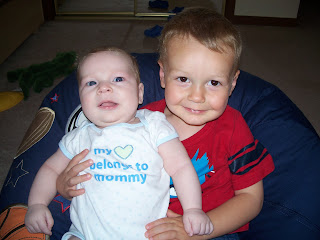 Cael is saying so many new words, phrases, sentences... it is amazing. I must relay the funniest story. So one day I was down here at the computer and had Cael and Emmett down here with me. Mark and I sleep down here so the baby monitor is down here on the dresser and it was on. We had the TV on upstairs so you could here the TV show. Cael was looking at the monitor so I explained it was how mommy can hear him and Emmett when she is down here. All of a sudden he said, "cheeseburger no pickles please." LOL! I guess I take my child to the drive-thru too much! That is what I order for him. Then last weekend we were in JCPenney and someone came over the intercom, paging another employee. Cael again yelled out "cheeseburger no pickles please." I talk to my mom on the phone and often have it on speakerphone so I can multi-task. He said the same thing to her one day. What a character!